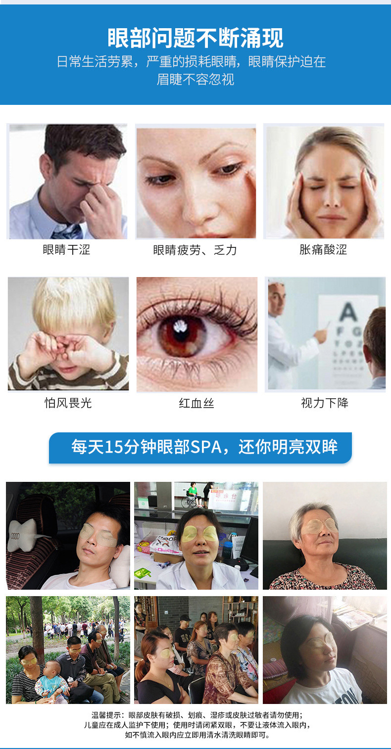 眼保健贴 说明书 [产品名称]眼保健贴 [产品说明]本产品由将野菊花、夏枯草、红花、密蒙花、金银花、决明子、白芷、车前子、石决明、丹皮、千里光、冰片、薄荷脑、甘油、山梨酸钾